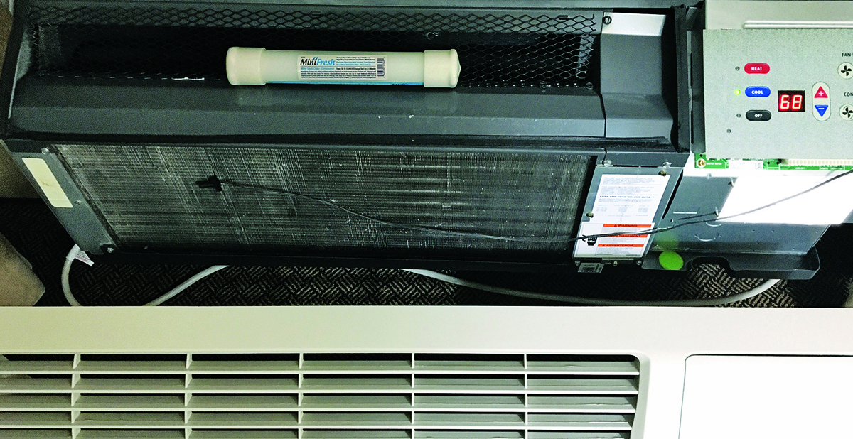 Use in mini split, PTAC, or other ductless systems. The MiniFresh can be installed on the return louvers of indoor units. It will be out of view and will work quietly to eliminate odors. MiniFresh mini split odor eliminator treats up to one 12,000 BTU indoor unit for 3 months.