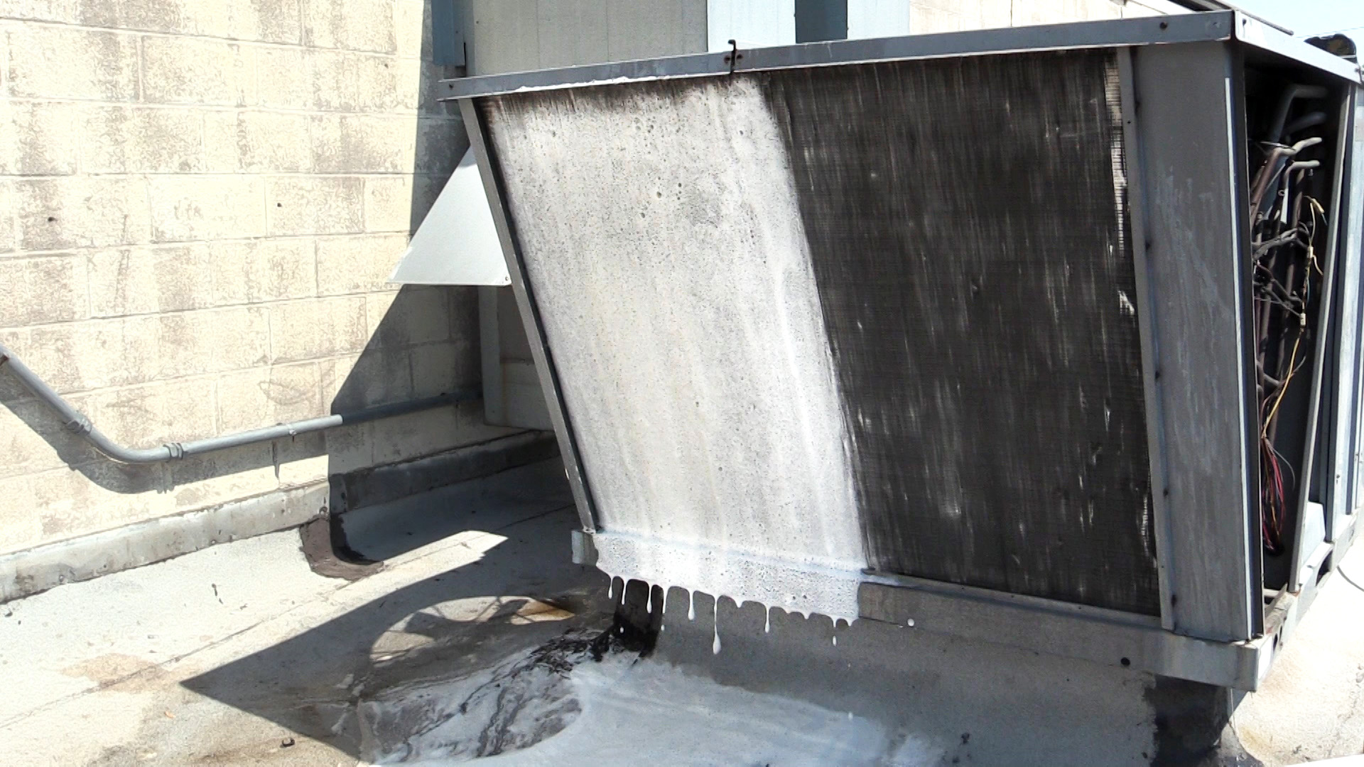 - Spray cleaning solution onto dirty coils or surfaces and allow it to remain in contact with the dirty surfaces for 5-10 minutes.