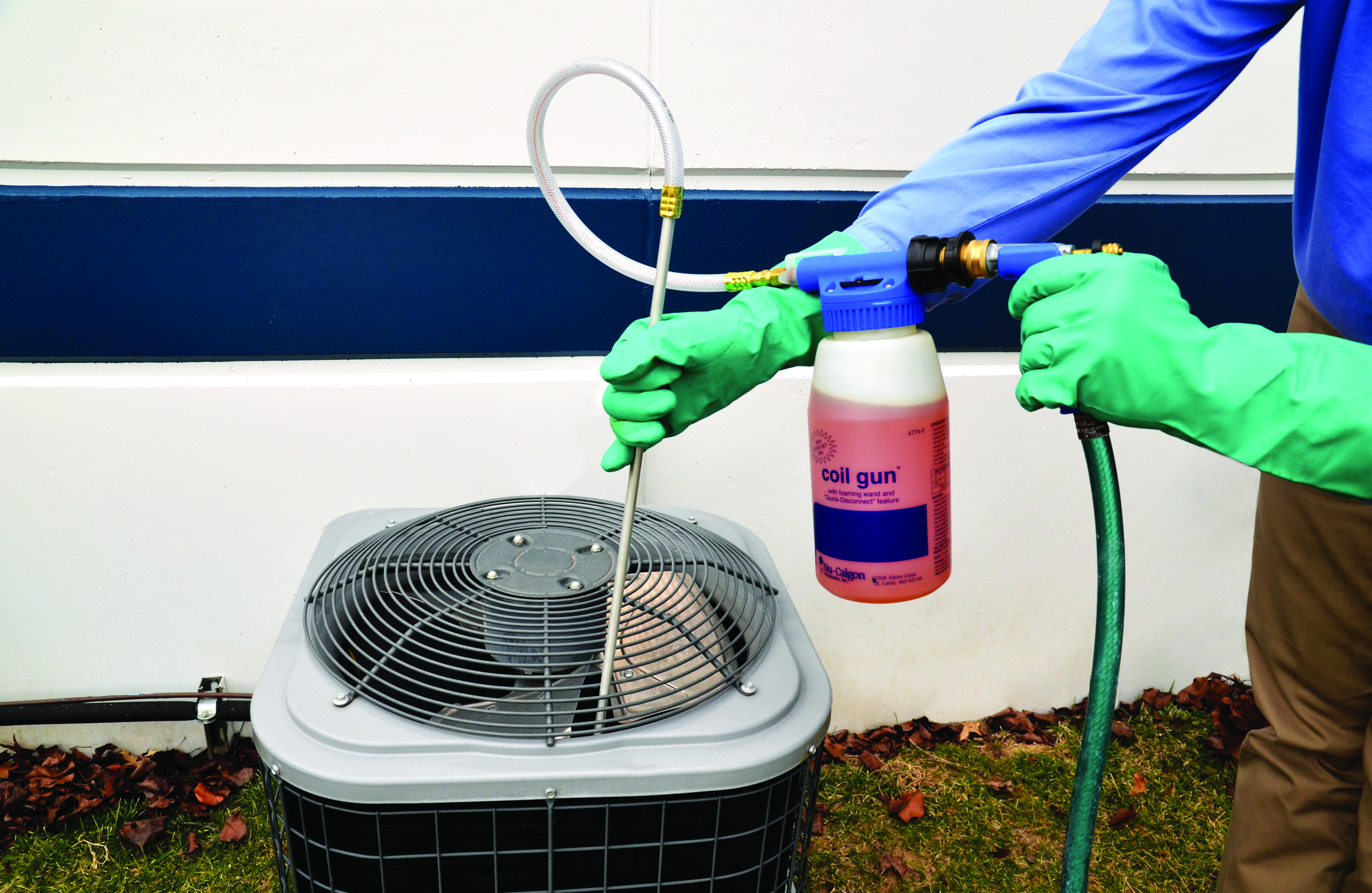 - Add appropriate Nu-Calgon coil cleaner to Coil Gun bottle, securely fasten to mix head.