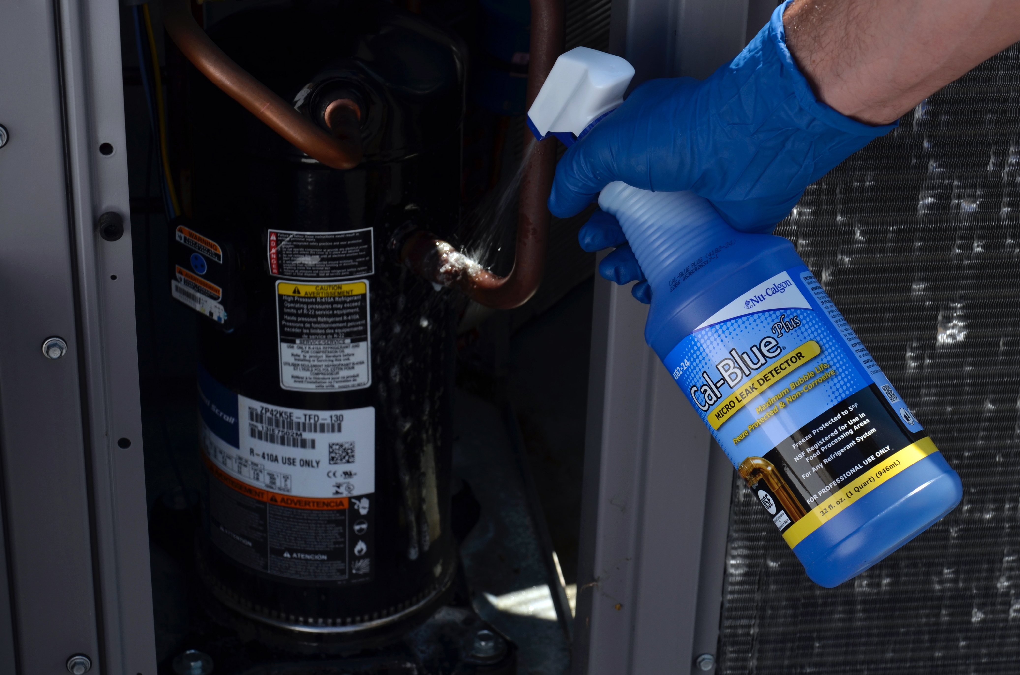 One of the most important tasks of today’s technician is refrigerant management, and specifically leak detection. For this job, the technician requires a quality, effective leak detector, and Cal-Blue Plus meets that need. Cal-Blue Plus has outstanding freeze-protection down to 5ºF (and up to 225ºF).