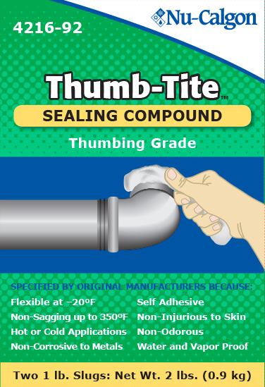This compound is formulated and manufactured for use in many sealing, insulating, and general maintenance applications. It has excellent adhesion capability and is non-staining, non-hardening, and unaffected by wide variations in temperature. Thumb-Tite is packaged in 2 lb. boxes, each box contains two one pound bars.
